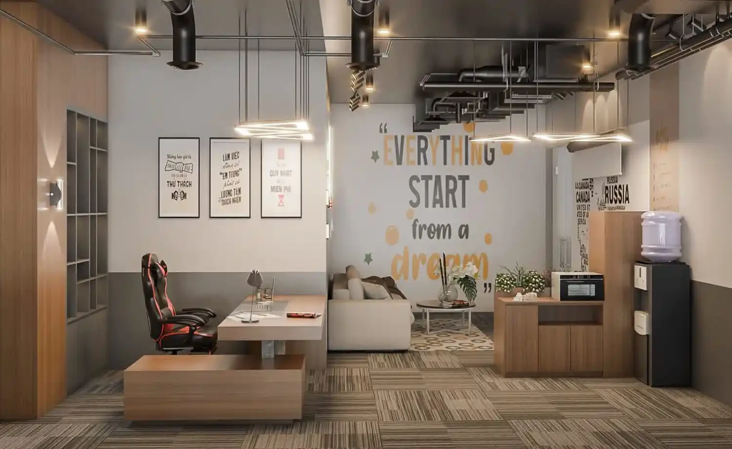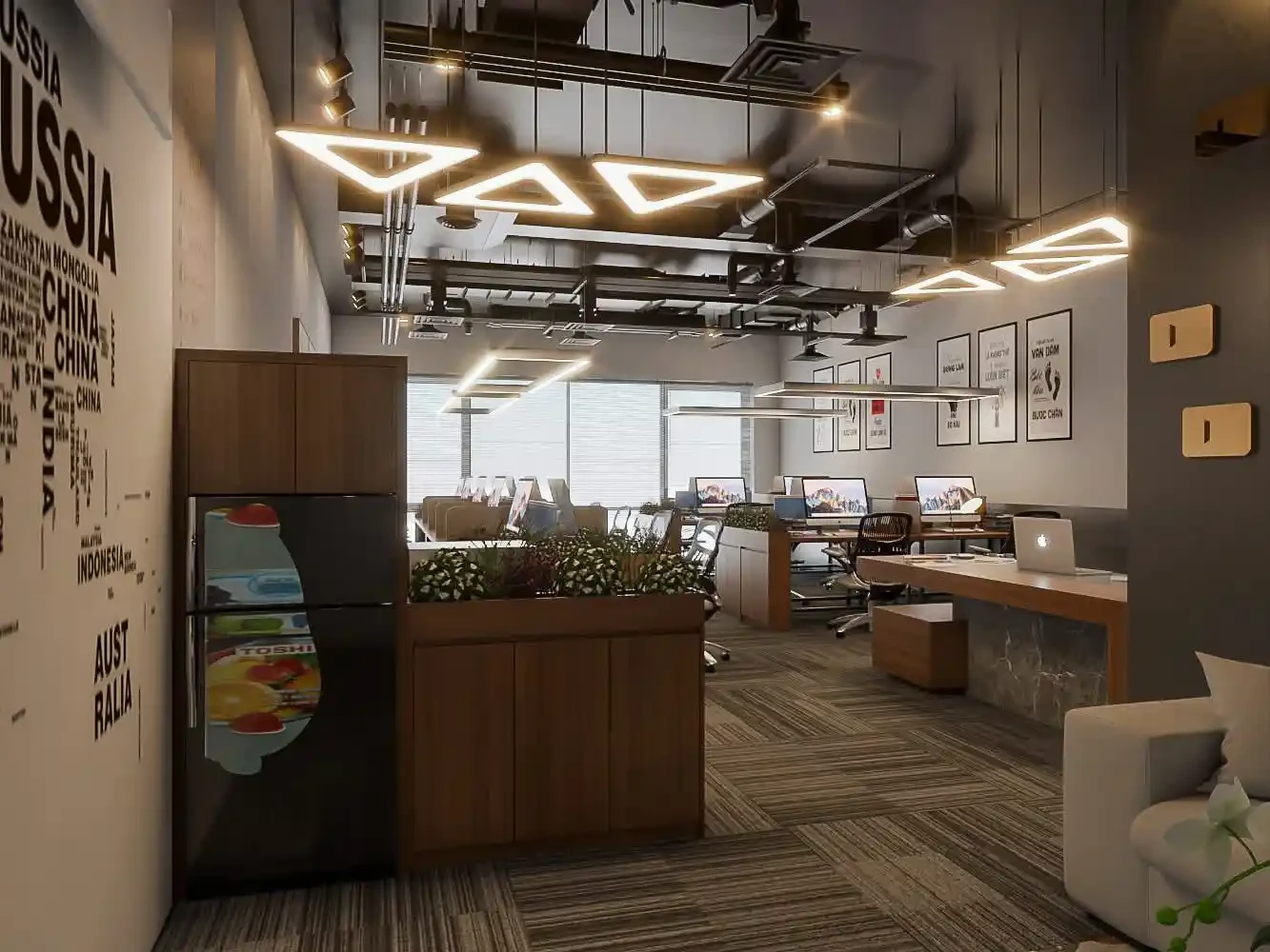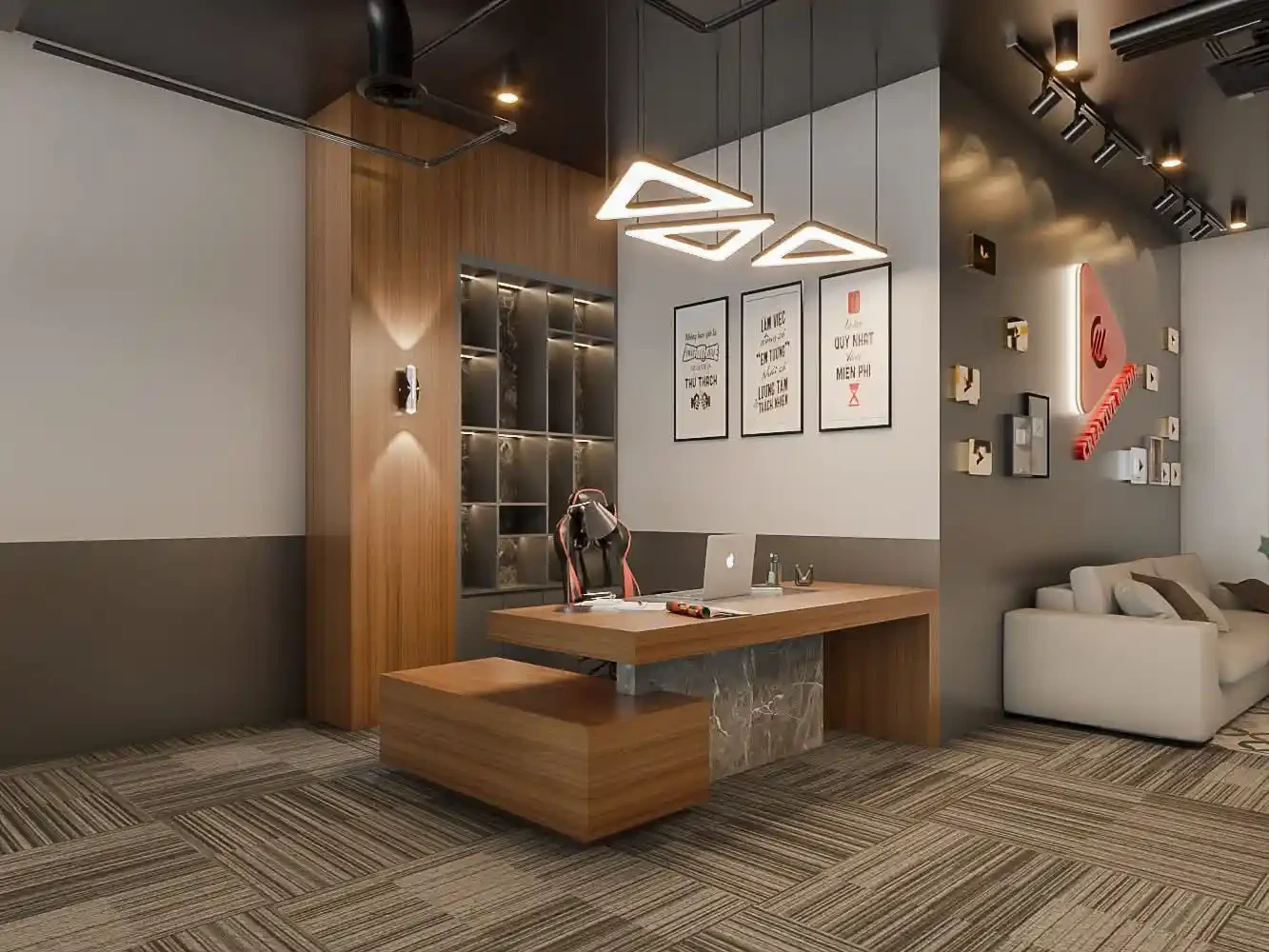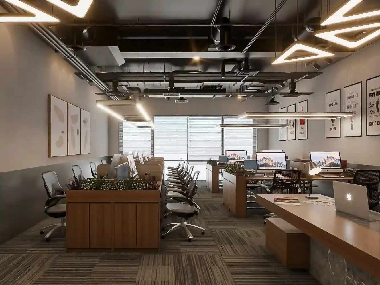 A smart and functional office design focused on productivity, comfort, and a professional look.
